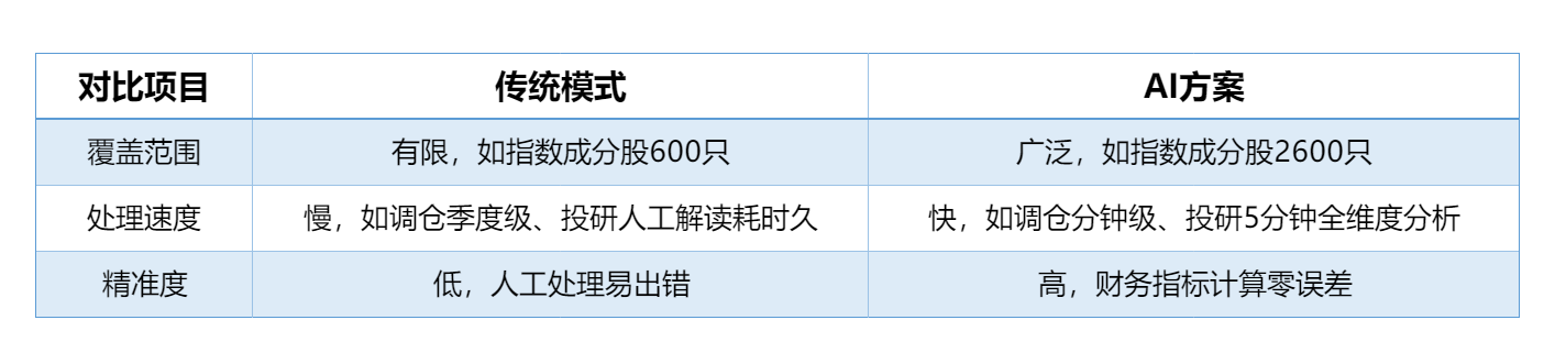 在指数动态定制方面,传统模式下成分股覆盖有限、调仓周期长,而无限光年的方案将成分股覆盖从600只拓展至2600只,调仓周期从季度压缩至分钟级实时响应。金融专业培训上,通过智能化体系,让员工知识掌握率大幅提高。智能信贷分析方面。整合多源信息,实现自动化风控和智能决策,提升了中小银行普惠金融服务质效。AI投研助手,5分钟内完成单份财报全维度分析,效率较人工提升超90%。覆盖 A 股 5364 家上市公司,财务指标计算零误差,为分析师输出结构化、可定制的专业分析报告。该助手目前已在券商等金融机构落地。这些方案在提升金融业务效率的同时,凭借合规可控的技术特性,实现了效率与合规的双重破局。“金融AI需懂行业语言,技术必须完成从‘能用’到‘敢用’再到‘好用’的三重跨越。”漆远强调。